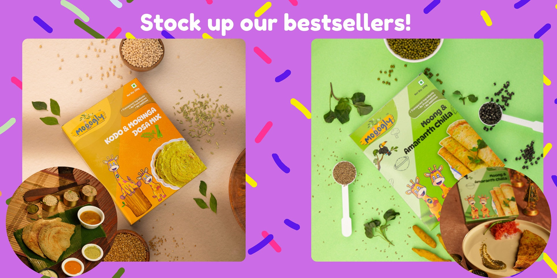 Quickshop • Nutrient-packed Moong and Amaranth Chilla.• Ragi and Nuts Chocolate Mix, rich...